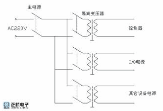 2)控制器和I/O系統分別由各自的隔離變壓器供電,并與主電路電源分開,如圖2所示: