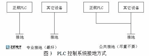 3)PLC的接地最好采用專用的接地極。如不可能,也可與其他裝置共用接地系統,但須用自己的接地線直接與公共接地極相連。如圖3所示: