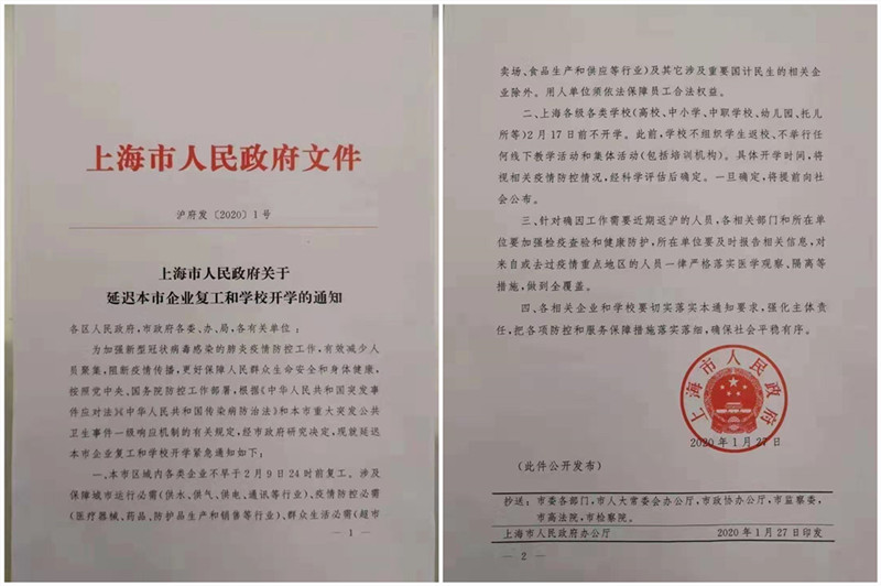 > 通知!接上海市政府通知,我司延遲復(fù)工時(shí)間
