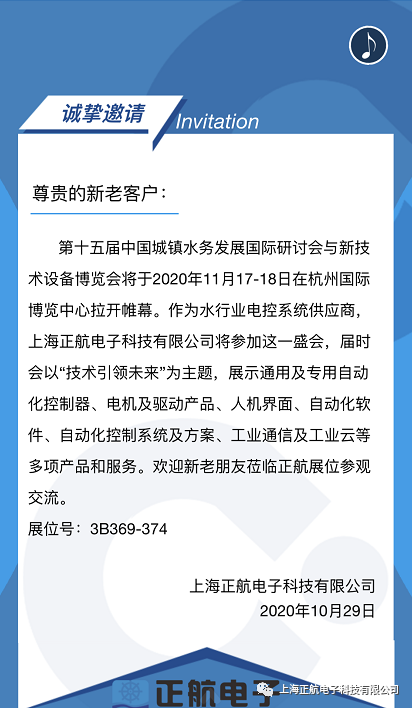 > 杭州-水務(wù)大會(huì)正航電子邀請函