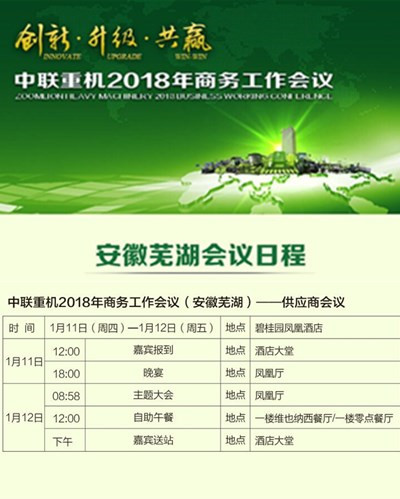 - 中聯重科是一家集工程機械、農業機械和金融服務多位一體的全球領先高端裝備制造企業。創立于1992年,經過20多年的創新發展,使中聯重科逐步成長為一家全球化企業。中聯重科先后實現深港兩地上市,成為業內首家A+H股上市公司,注冊資本達76.64億元。正航電子作為中聯重科多年的供應商有幸被邀請參加中聯重機2018年商務工作會議。新的一年,正航電子將繼續為客戶提供優質的服務和產品,不忘初心,與客戶攜手前行。